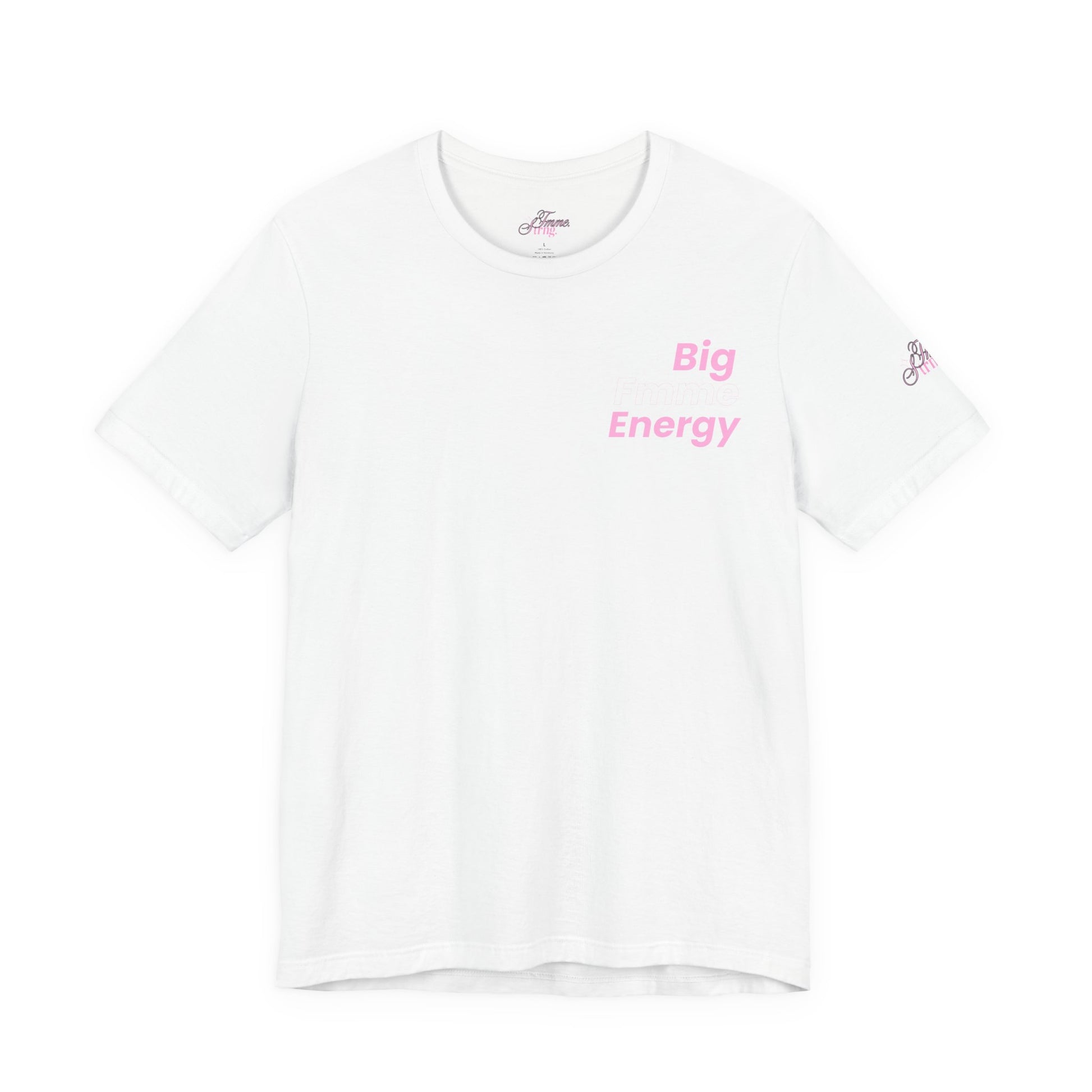 It’s not just a fit, it’s a state of mind, bb 💖✨. This crisp white jersey cotton tee with light pink “Fmme Strng” lettering is soft, breathable, and ready for your everyday glow.